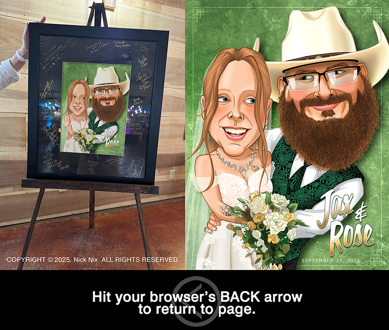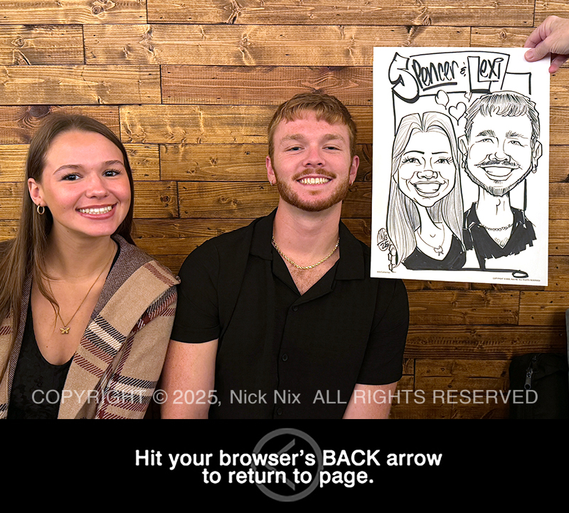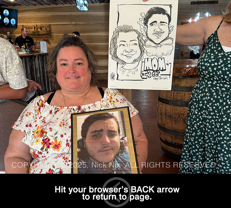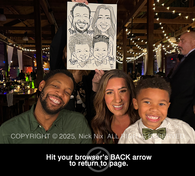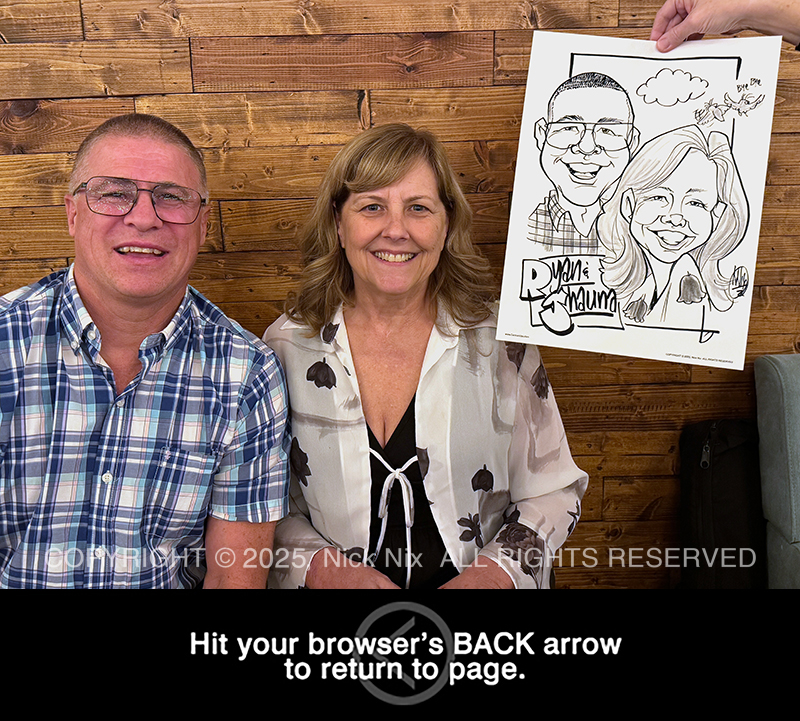 COMING SOON Legacy Page: We often draw at events that we do annually. There are some who tell us that they have several drawings that we have done for them. "You have drawn our family over the years and we have them hanging all through our hallway!" We are asking our annual friends to share a photo of their collection so that we can post it on our new "Legacy Page". If you have several drawings that we have done over the years and you would like for us to share them on our website please take a good picture of your drawings along with your family and send them HERE. Once we have your photos we will share them on our "Legacy Page". COMING SOON New Celebrity Page: Nick and Chad have both been drawing different celebrities. Both are movie nuts so they love drawing their favorite celebs. We are currently working on a "Celebrity Page" that will showcase their hard work. COMING SOON Stay tuned, there is SO much more on the horizon. Come back soon and check out more of "What's New".
